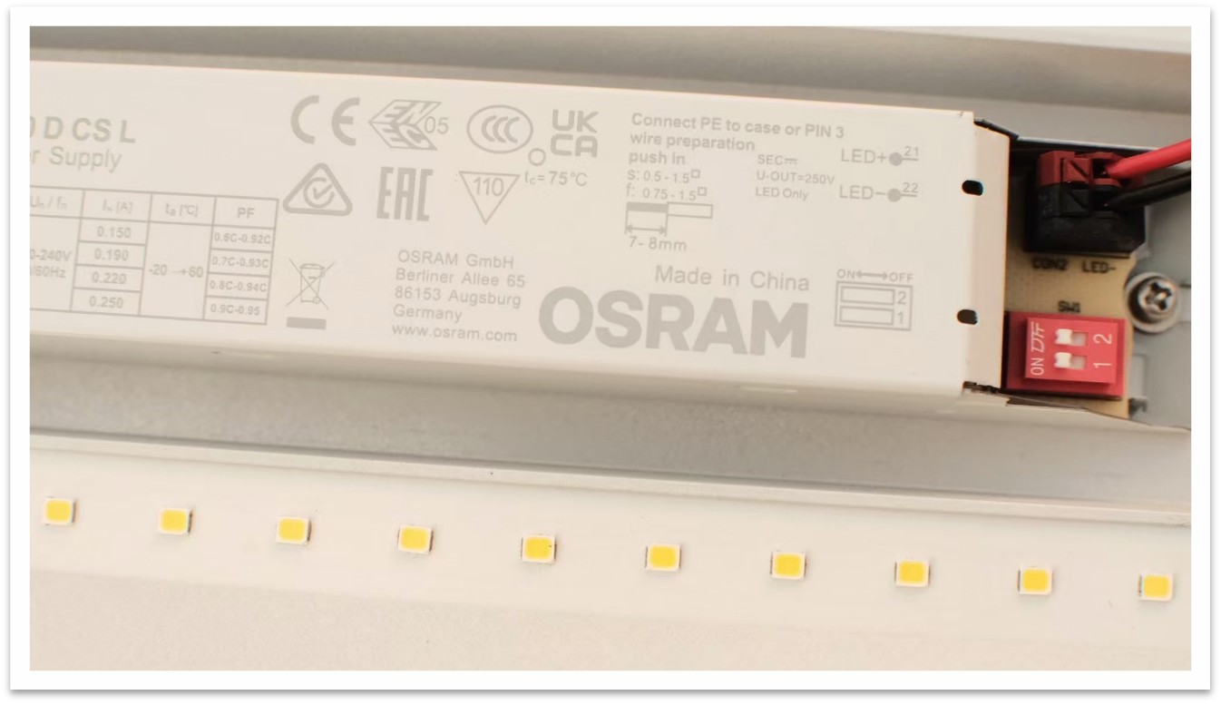 Batten Light инсталира голямата марка Osram Driver за захранване.