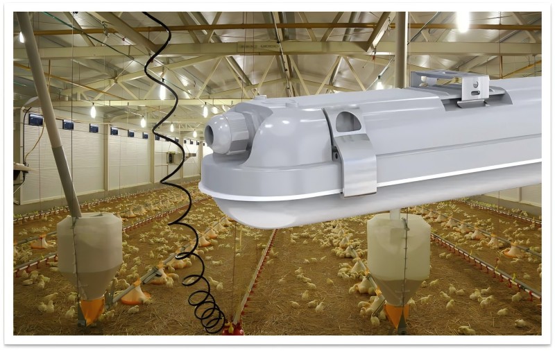 Средата на фермата е необичайно лоша, с обилна влага, прах и комари. Традиционната LED крушка ще остави вентилационен отвор, за да изстине крушката. По принцип традиционните светлини оставят вентилацията и е лесно да се направят водна пара в пилешкия коп, прах и комари, за да влязат в крушката, което води до замърсяване на крушката, намалявайки яркостта на крушката и увеличаване на шанса за повреда на крушката. И новият вид тристична светлина може да реши тези проблеми.