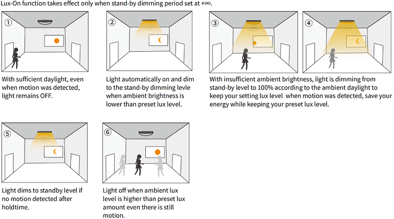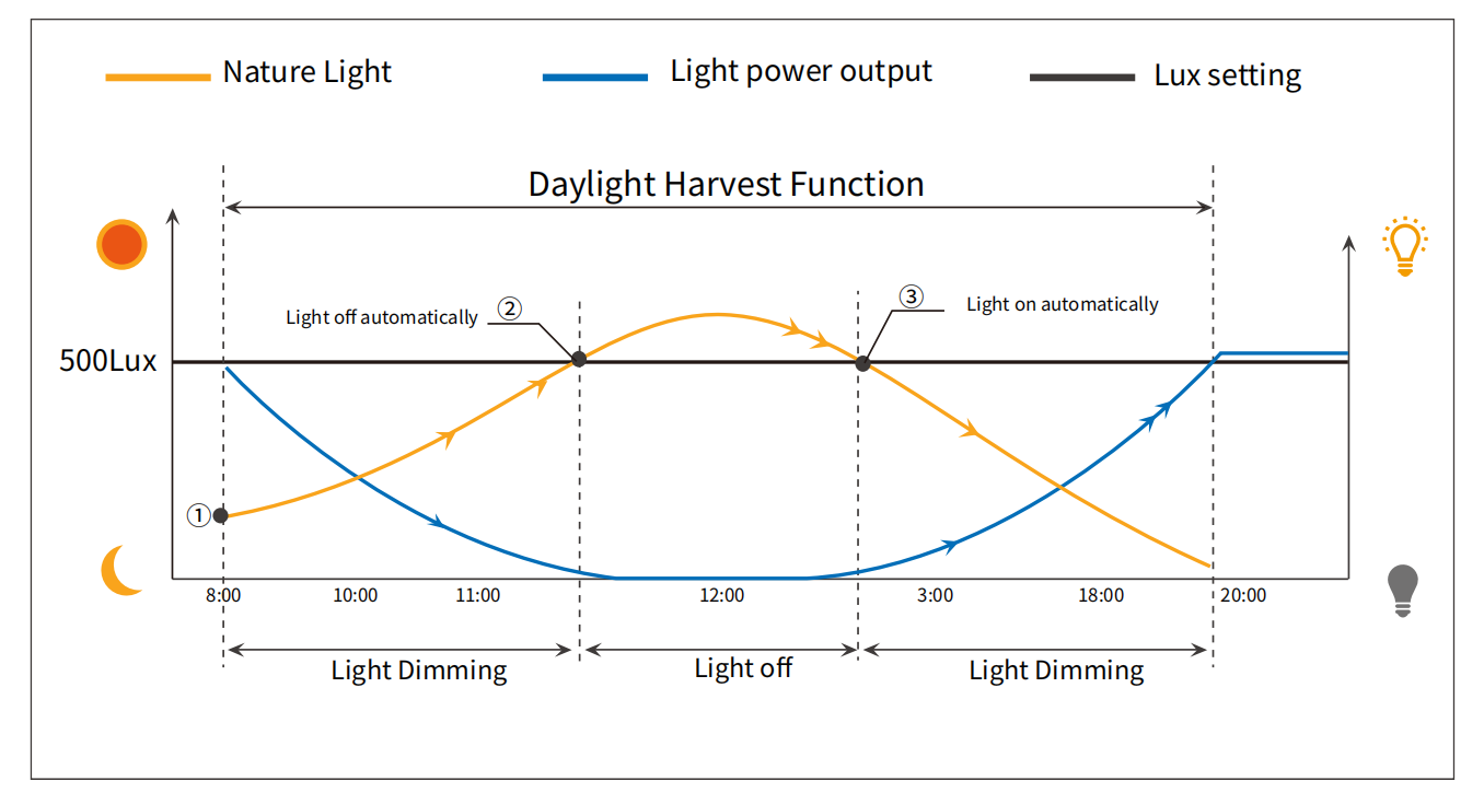 2. Функция за автоматично включване/изключване на Lux + функция за дневна светлина